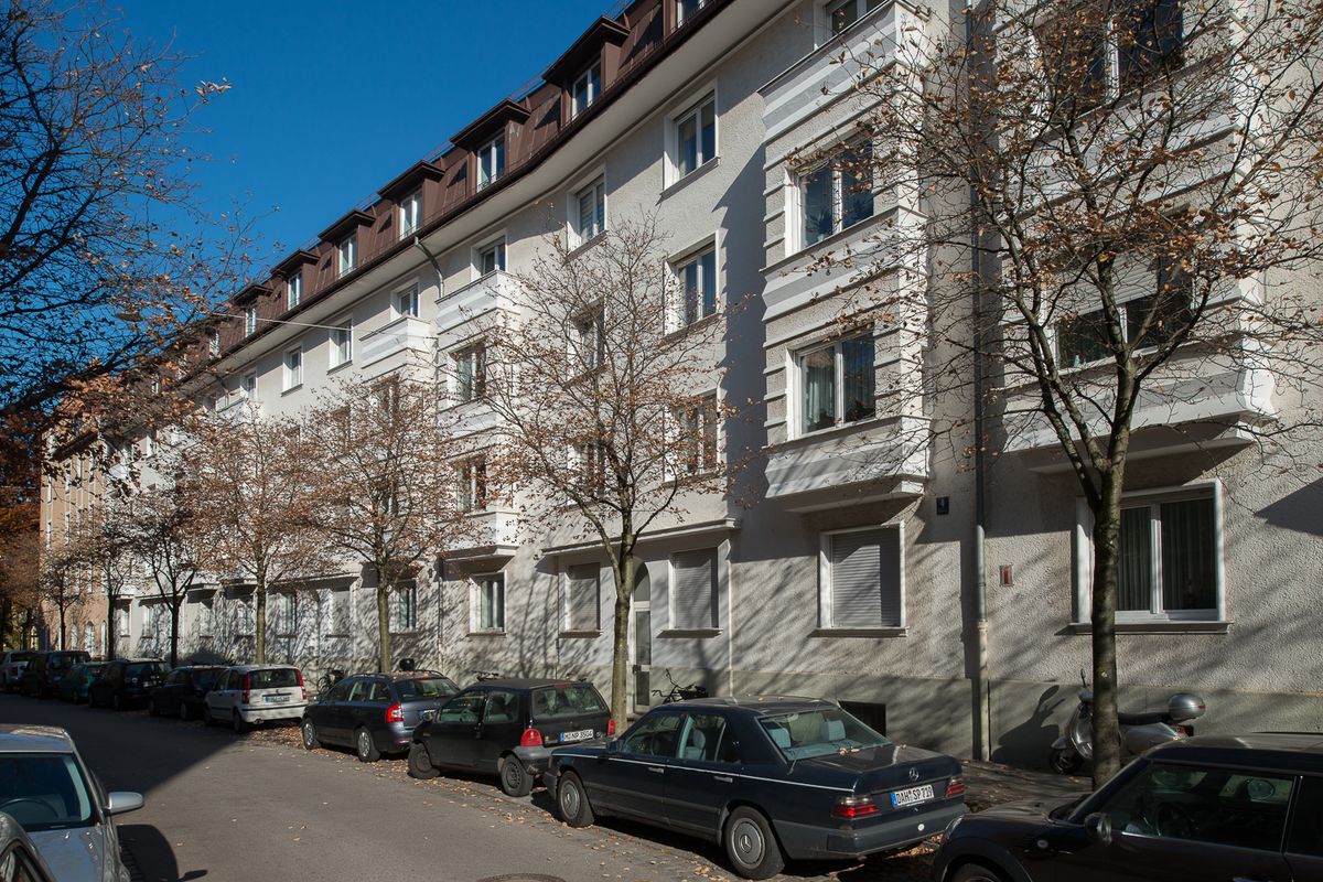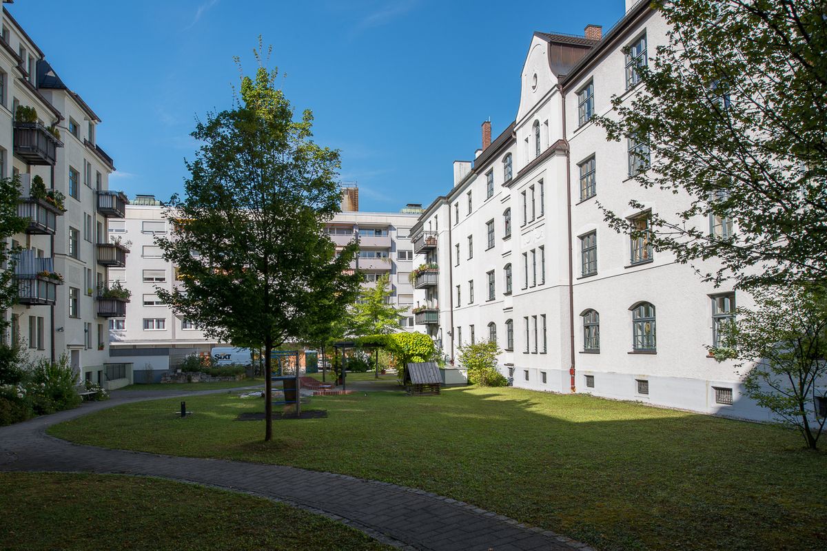 Sehr zentral liegen auch unsere beiden Häuser an der Landshuter Allee, die zum Teil ebenfalls über einen Balkon in einen kleinen, grünen Hinterhof verfügen.
