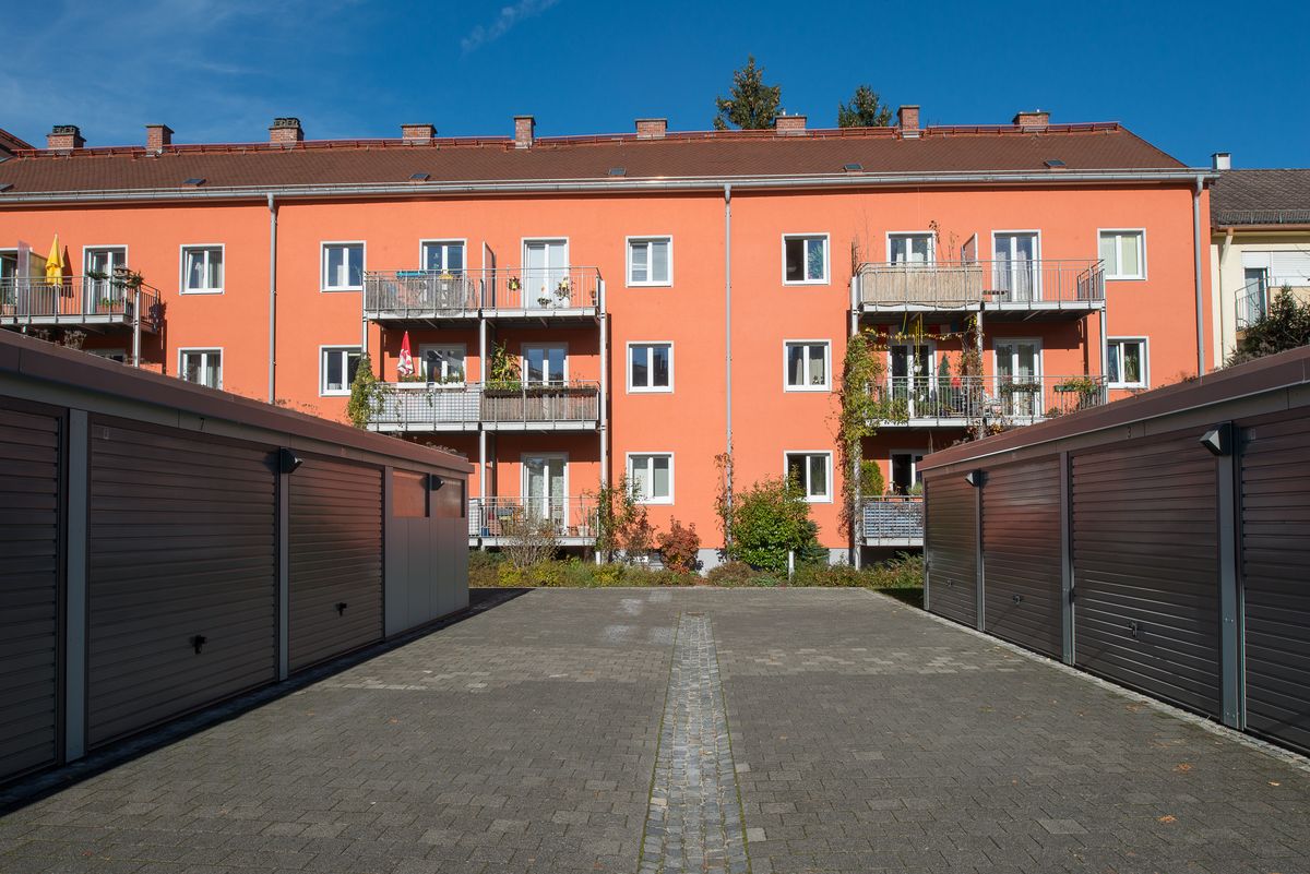 8 oberirdische Garagen sowie diverse Abstellmöglichkeiten für Fahrräder